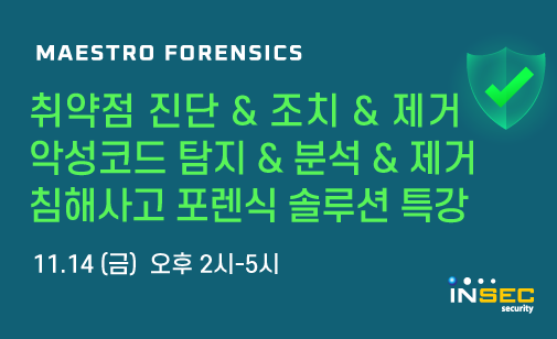 취약점 진단 & 조치 & 제거 / 악성코드 탐지 & 분석 & 제거 침해사고 포렌식 솔루션 특강 세미나2025.11.14(금) | 14:00 ~ 17:00
